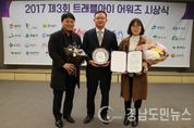 (합천/권연홍 기자) = 합천군(군수 하창환)은 지난 21일 한국프레스센터 19층 기자회견장에서 개최된 ‘2017 제3회 트레블아이 어워즈’ 행사에서 관광마케팅부문 우수상을 수상했다. 트레블아이 어워즈는 순수 민간부문 대표 관광 어워즈로서, 지자체 229곳의 여행 정보를 서비스하는 관광플랫폼 트래블아이가 8개 부문 24개 지자체를 대상으로 관광산업의 지역별 편차를 특허 기술화한 ‘지역호감도’를 기반으로 2016년 11월부터 올해 10월까지 평가하여 시상하는 행사이다. ‘지역호감도’는 트래블아이와 트래블투데이가 보유하고 있는 여행 정보의 총량과 이에 대한 콘텐츠 호감도, 트래블피플 활동지수, 트래블파트너 참여도 등에 따라 변동되는 특허로 등록된 사용자 기반 관광 지표로 매일 집계된다. 수상 지역 선정은 ‘지역호감도’를 수치화한 객관적 데이터를 통해 1차 정량평가 후, 관광분야 전문가 집단으로 구성된 2차 선정위원회의 정성평가를 거쳐 최종 수상자를 선정했다. 합천군은 특화된 관광자원을 바탕으로 지역 관광활성화 및 지역관광 매력도를 높여간 점에 대해 우수한 평가를 받았다. 참고