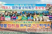 (합천/권연홍 기자) = 합천군에서는 지난 15일 합천농협 하나로마트 앞에서 합천쌀 소비촉진 행사를 실시했다 이번 행사는 쌀 소비 촉진 및 합천쌀 애용 홍보를 위한 캠페인으로서 합천군수 및 유관기관에서 40명이 참석했다 행사 품목은 쌀, 양파라면 양파떡볶이 등이었으며 행사도중 쌀300포 (500g/포)를 시식용으로 군민들에게 제공하기도 했다. 한편 군에서는 이번 행사를 통하여 고품질 영호진미 쌀을 선보였는데, 고품질 영호진미 쌀은 합천쌀의 품질개선과 이미지 제고를 위하여 영호진미 1모작 재배단지가 군과 계약을 체결하여 생산한 최고 품질의 쌀이다. 군 관계자는 “이번 행사에 도움을 주신 농업법인 합천유통(주) 및 유관기관에 감사드리며, 앞으로도 다양한 행사를 통해 합천쌀 홍보를 강화해 나가겠다”고 밝혔다.