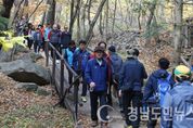 (합천/권연홍 기자) = 민주평화통일자문회의합천군협의회(회장 김기태)는 지난 4일 김기태 협의회장, 하창환 합천군수, 자문위원, 군민, 관광객 등 300여명이 참여한 가운데 해인사 소리길 일원에서 통일을 염원하며 “민주평통과 함께하는 건강걷기 행사”를 개최했다. 지역사회 소통과 한반도 평화통일을 기원하고자 매년 개최하는 걷기행사는 2017대장경세계문화축전의 마지막 주말에 뜨거운 관심과 참여를 유도하기 위하여 해인사 소리길에서 진행하였으며, 축전 종료 하루를 남겨놓고 대장경 축전을 관람하려는 방문객들과 지역주민들이 많이 참여했다. 먼저 해인사 시외버스터미널 주차장 소리길 입구에서 출발하여 소리길을 2.9km 걸은 후 홍류동 매표소에서 통일한마당 행사로 국민소통 작은 음악회 및 통일참여 이벤트를 실시하였다. 또 추첨을 통해 쌀, 토마토, 버섯, 전통장 세트 등 지역에서 나는 다양한 특산물을 경품으로 증정해 행사를 더욱 풍성하게 해주었다. 김기태 협의회장은 “이번 행사를 통해 평화통일 의식을 고취하고 동시에 군민 화합과 체력증진을 통해 건강한 삶을 도모할 수 있는 계기가 되기를 기대한다”고 전했다. 하창환 합천군수는 &
