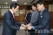 (합천/권연홍 기자) = 합천군(군수 하창환)은 6일 정례조회 시 규제개혁 유공 공무원 5명을 선정하여 표창장을 수여했다. 표창대상자 및 유공 내용으로 규제개혁 추진 홍보 분야에 기획감사실 강위수 주무관이, 규제개혁 개선과제 발굴 분야에 재무과 윤용희 주무관과 축산과 송현주 주무관이, 합천 국보·영상테마 체험 특구 지정을 통한 규제완화 및 투자유치로 경제교통과 도상종 주무관이, 합천군 계획조례 개정을 통한 규제 완화로 도시건축과 정종대 주무관이 각각 수상을 했다. 이날 표창은 규제개혁으로 군민생활의 불편을 해소하고 기업의 투자환경 조성과 지역경제 활성화에 기여한 공무원에 대한 인센티브 지원으로 규제개혁에 대한 동기부여 및 업무 담당자의 사기진작을 위해 마련됐다. 합천군은 앞으로도 정부의 핵심정책인 규제개혁 추진에 적극 협업하고 성과향상을 위해 불합리한 규제 발굴 개선에 기여한 직원에 대해 국외연수, 표창 등 각종 인센티브 확대를 통하여 규제개혁에 대한 직원들의 적극적인 관심과 참여를 유도하기로 했다.
