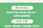 [경남도민뉴스=김부경 기자] 남해군은 제81회 식목일을 맞아 오는 27일 오전 10시부터 남해읍 공설운동장에서 ‘내나무갖기 캠페인’을 진행한다. 군민의 식목일 참여 의식 고취와 녹색환경 조성을 위해 마련한 이번 행사에서는 홍도화, 블루베리, 왜성배롱, 목수국 등 인기 수종이 무료로 배부된다. 확보된 수량 소진 시까지 선착순으로 진행된다. 남해군 관계자는 “내 나무갖기 캠페인은 나무를 사랑하고 자연을 보호하고자 진행하는 캠페인으로, 나만의 나무를 통해 일상 속 행복과 치유를 선물하고자 하는 마음을 담아 배부한다.”고 밝혔다. 캠페인과 관련한 자세한 내용은 산림공원과로 연락하면 상세한 안내를 받을 수 있다.