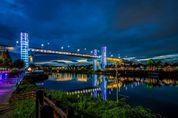 [경남도민뉴스=김용욱 기자] 인천광역시 계양구는 19일 저녁 계양대교 일원에서 ‘계양아라온 아트웨이(빛의 거리 3단계)’ 점등식을 성황리에 개최했다고 밝혔다. ‘계양아라온 아트웨이’는 2023년과 2024년에 조성된 1·2단계 빛의 거리를 계양대교를 중심으로 연결하는 최종 사업이다. 이번 3단계 조성을 통해 단절돼 있던 수변 공간이 경관조명, 미디어 영상 패널, 트릭아트존 등이 어우러진 통합 문화관광 코스로 거듭났다. 이날 점등식은 구립교향악단의 웅장한 연주와 인기 가수의 축하 공연 등 다채로운 무대로 꾸며졌다. 하이라이트인 점등 퍼포먼스에서는 계양대교 타워 전면을 활용한 초대형 미디어파사드가 장관을 이루며 시민들의 탄성을 자아냈다. 시민들은 휴대폰 불빛으로 화답하며 새로운 야간 명소의 탄생을 함께 축하했다. 윤환 계양구청장은 “이번 아트웨이 조성으로 그동안 단절됐던 계양아라온의 남단과 북단을 잇는 빛의 거리가 완성됐다.”라며, “과거 아무도 찾지 않던 이곳을 수도권 대표 관광명소로 만든 이 빛이, 계양을 대한민국 국제관광의 관문으로 성장시키는 시작이 될 것”이라고 말했다. ‘계양아라온 아트웨이’는