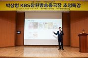 [경남도민뉴스=김종태 기자] 경상국립대학교는 12월 10일 오후 가좌캠퍼스 박물관 1층 대강당에서 박상범 KBS창원방송총국장을 초청하여 ‘방송사 이해하기-지역방송을 중심으로’라는 주제로 특강을 개최했다. 이날 특강은 미디어를 활용한 대학홍보를 강화하고 언론계 진출 희망 학생들의 진로 탐색에 도움을 주기 위해 마련했다. 경상국립대는 앞으로도 이 같은 특강을 수시로 마련할 계획이다. 이날 특강에는 권진회 총장, 대학본부 보직자, 실·과·팀장과 올해 신설된 사회과학대학 미디어커뮤니케이션학과 학생, 경상국립대 신문방송사 학생기자 등 70여 명이 참석했다. 박상범 총국장은 이날 특강에서 지상파와 케이블의 차이, 종편과 경남 지역 방송사에 대한 이해, 총국장과 사장의 차이, 기자와 PD 직능의 특징, KBS창원방송총국 제작 프로그램 소개 등 기자 출신 총국장으로서 방송 업계의 흥미롭고 생생한 이야기를 들려주었다. 박상범 총국장은 1994년 KBS 기자 22기로 KBS 한국방송에 입사하여 30년 동안 기자, 앵커, 부장, 기자협의회 회장 등 다양한 부서의 업무를 두루 섭렵했으며 2023년 12월 KBS창원방송총