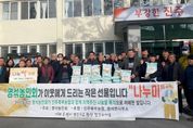 [경남도민뉴스=김종태 기자] 진주시 명석면 농민회는 6일 명석면사무소 앞에서 직접 경작해 수확한 ‘나눔 쌀’을 지역사회 소외된 이웃에게 나눠주는 기부행사를 열었다. ‘나눔 쌀’ 기부 행사는 명석면 농민회의 자체 회의를 통해 지역 내 어려운 이웃을 돕고자 하는 마음을 담아 개최되고 있으며, 올해 3회째를 맞이했다. 이날 농민회가 기부한 쌀 700kg(환가액 210만 원 상당)은 관내 취약계층 70가구에 전달될 예정이다. 이번 행사에는 북부농협과 명석농약사에서도 육묘, 제초제를 지원하며 후원기관들의 협력으로 지역사회 상생의 의미를 더했다. 이태희 명석면 농민회장은 “지역 농민들과 후원해주신 기관들의 따뜻한 마음이 모여 이번 쌀 나눔 행사를 준비할 수 있었다”며 “앞으로도 지역사회와 함께하는 나눔활동을 지속적으로 이어가겠다”고 전했다. 최수한 명석면장은 “벌써 3회째 어려운 이웃을 위해 온정을 베푼 농민회 회원들에게 감사하다”며 “농민회의 쌀 나눔 행사는 단순한 물질적 지원을 넘어 지역사회의 유대감을 강화하고 지역민 간 화합에 크게 기여할 것으로 기대된다”고 말했다.
