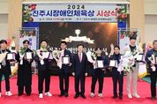 [경남도민뉴스=김종태 기자] 진주시장애인체육회는 6일 진주시장애인문화체육센터에서 ‘2024 진주시장애인체육상 시상식’을 개최했다. 이번 시상식은 제44회 전국장애인체육대회를 비롯한 각종 대회에서 우수한 성적을 거둔 선수들과 올 한 해 동안 장애인 체육 발전을 위해 힘써 온 체육 관계자 및 봉사자들을 격려하고 감사의 뜻을 전하기 위해 마련됐으며, 체육인과 내빈 등 300여 명이 참석하며 성황을 이루었다. 이날 행사에서는 진주시장 표창을 비롯하여 국회의원 표창, 진주시의회 의장 표창, 진주시장애인체육회장 표창 등 20명에게 표창이 수여됐고, 진주시장애인체육회 협약 단체인 진주중앙라이온스클럽에는 감사패가 전달됐다. 또한 제44회 전국장애인체육대회 메달 수상자들에게는 우수선수상, 각종 장애학생체육대회에서 입상한 학생들에게 우수꿈나무선수상, 우수 장애학생 선수들에게는 장학증서가 수여됐다. 국제라이온스협회 355-E지구와 진주시장애인롤러스포츠연맹, ㈜청담스틸의 기부금으로 마련된 포상금 및 장학금 지급으로 우수(꿈나무)선수상 수상자와 우수 장애학생 선수들을 격려하기도 했다. 특히 제44회 전국장애인