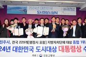 [경남도민뉴스=김종태 기자] 진주시는 29일 국토교통부가 주최한 도시의 지속 가능성 및 생활 인프라 수준을 평가하는 ‘2024년 대한민국 도시대상’에서 전국 229개 지자체(행정시 포함) 대상 평가에서 종합 1위를 달성하며 ‘대통령상’을 수상하는 영예를 안았다. 대한민국 도시대상은 '국토의 계획 및 이용에 관한 법률'에 근거해 국토교통부가 매년 전국 229개 지자체를 대상으로 도시공간과 시민의 삶의 질을 개선하고 도시경쟁력의 향상을 위해 노력한 성과를 평가하여, 우수한 성과를 거둔 지자체에 수여하는 최고 권위의 상이다. 진주시는 지난 민선 7기에 이어 8기 들어 다년간 역대 최고의 성적을 거두고 있다. 2020년 장관상, 2021년 국무총리상, 2022년 대통령상, 2023년 장관상에 이어 2024년 대통령상을 수상해 5년 연속 수상의 쾌거를 올렸다. 5년 연속 수상과 함께 중소도시가 대통령상을 격년 수상하는 경우는 극히 드문 사례여서 더욱 특별한 의미를 지닌다. 도시대상은 각 분야별 전문가들로 구성된 평가위원회에서 4개 부문(도시사회·도시경제·도시환경·지원체계) 11개 항목을 종합적