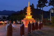 [경남도민뉴스=김태수 기자] 산청불교사암연합회는 지난 18일 산청IC 일원에서 불기 2570년 부처님 오신 날 기념 점등식을 개최했다고 20일 밝혔다. 행사는 삼귀의와 반야심경 봉독을 시작으로 점등 발원문 독송, 대안스님의 봉축사, 점등식, 탑돌이, 사홍서원 등이 진행됐다. 특히 점등에서는 ‘불·법·승’ 구호에 맞춰 봉축탑에 환한 불빛이 들어와 불자들이 일제히 박수를 보냈다. 또 탑돌이에서는 석가모니불 정근을 하며 탑을 돌아 개인의 안녕과 함께 산청군의 발전과 인류의 평화를 염원했다. 산청불교사암연합회는 이번 점등식을 시작으로 부처님 오신 날의 의미를 되새기는 봉축 기간을 이어갈 예정이다. 대안스님(산청불교사암연합회장)은 “점등의 불빛이 우리 사회의 어두운 곳을 환히 비추고 군민 모두의 마음에 다시금 희망이 피어나는 계기가 되길 바란다”며 “부처님의 자비광명이 온 누리에 충만하길 기원한다”고 말했다.