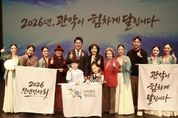 [경남도민뉴스=류종길 기자] “전진과 도약을 상징하는 병오년을 맞아, 희망찬란한 미래를 향해서 힘차게 나아가는 한 해가 되시길 기원합니다!” 관악구가 지난 1월 13일 오후 3시 관악아트홀에서 병오년 새해, 관악의 힘찬 출발을 알리는 ‘2026년 관악구 신년인사회’를 개최했다. 이번 행사에는 박준희 관악구청장을 비롯한 국회의원, 시·구의원, 유관기관의 장과 구민 1,500여 명이 한 자리에 모여 새해 건강과 안녕을 함께 기원했다. 구는 본격 행사 시작 전 ‘튠어라운드’의 팝 재즈 공연과 ‘히어로즈 앙상블’의 클래식 공연으로 막을 올리며 힘찬 새해의 출발에 즐거움을 더했다. 본 행사가 시작하며 무대에서는 관악구립여성합창단의 축가가 진행됐으며, 이어 아이부터 어르신까지 주민 각계 각층의 새해 소망을 담은 영상이 상영돼 구민과 함께 가정의 안녕과 민생 안정, 구정 발전을 염원하는 시간을 가졌다. 이후 박준희 관악구청장을 비롯한 관악구의회 의장, 국회의원, 각 정당 위원장의 새해 인사와 덕담이 이어졌다. 박 구청장은 이날 새해 인사와 함께 ▲기본적인 삶을 보장받을 수 있는 맞춤형