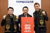 [경남도민뉴스=류종길 기자] 강원특별자치도의회는 2026년 강원FC의 선전과 도내 축구 열기 확산을 위해 ‘시즌권 구매-기부 릴레이’에 동참한다. 강원특별자치도의회 의장 김시성과 김병지 강원FC 대표이사는 1월 14일 도의회 의장 집무실에서 강원FC 시즌권 구매-기부 릴레이를 진행했다. 이번 릴레이를 통해 강원특별자치도의회 명의로 기부된 시즌권은 평소 프로축구를 접하기 어려운 아동과 청소년에게 전달되어 도민 화합과 축구 저변확대에 기여할 것으로 기대된다. 도의회 김시성 의장은 “올 한해도 강원FC가 한 단계 더 도약하고 성장할수 있도록 지속적인 관심을 기울이겠다”며, “강원FC가 도민들에게 화합과 행복을 주는 구단으로 발전하기를 응원한다”고 말했다.