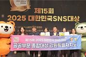 [경남도민뉴스=류종길 기자] 강원특별자치도는 ‘2025 대한민국 SNS 대상’에서 공공부문 종합대상(과학기술정보통신부 장관상)을 수상했다. 이번 수상으로 강원특별자치도는 2022년 ‘올해의 SNS’ 유튜브 대상, 2023년 인스타그램 최우수상, 2024년 유튜브 대상에 이어 4년 연속 수상이라는 성과를 거뒀다. 그동안 개별 SNS 채널에서 우수한 성과를 보여온 강원특별자치도는 올해 전체 SNS 운영 성과를 종합적으로 평가하는 부문에서 최고 영예인 종합대상을 받으며, 모든 채널에서 균형 잡힌 소통 역량을 입증했다. ‘대한민국 SNS 대상’은 한국소셜콘텐츠진흥협회가 주관하고 과학기술정보통신부가 후원하는 국내 최고 권위의 상으로, 사회관계망서비스(SNS) 활용 현황과 소통 역량을 종합적으로 평가해 우수 공공기관과 기업을 선정·시상한다. 올해는 정부 부처, 광역·기초지자체 등 12개 부문 118개 기관이 치열하게 경쟁했다. 강원특별자치도는 ‘강원잇다’를 통해 타 공공기관과 차별화된 유기적 온라인 협업 홍보모델을 구축하고, 다양한 주제의 콘텐츠와 캠페인으로 활발히 소통한 점이 높이 평가됐다. &