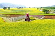 창녕군 남지읍에 조성된 유채꽃밭에 핀 풍차 유채단지 전경