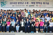 (함양/박현섭 기자) = 함양군(군수 임창호)은 예산 조기집행과 산불비상근무에 힘쓴 직원 노고를 격려하고 직원간 신뢰를 쌓고 심신재충전의 기회를 갖고자 지난달 30일부터 8일까지 통영동원 cc리조트에서 ‘2016 소통화합 한마음워크숍’을 개최했다. 전직원 570여명이 3기로 나눠 실시된 이번 워크숍은 청렴특강, 공동체훈련, 노래가 있는 감성특강, 임창호 군수 특강, 건강활동, ‘상고사’ 인문특강, 한산섬 제승당체험 순으로 1박 2일간 진행됐고, 재미있는 교육컨설팅 정승호 대표는 청렴특강에서 선진국청렴사례, 공직자에 대한 국민인식도, 청렴동영상, YB&윤도현, 얀 울리히(뚜르 드 프랑스 선수 독일) 등의 사례를 들며 쉽고 재밌으면서도 전달력있는 강의법으로 ‘청렴리더십’을 강의해 호응을 얻었다. 인문학 특강에서는 <우리민족의 대이동-아메리카로 이동한 우리민족의 흔적>의 저자 손성태(배재대)교수가 기존에 알고 있는 역사적 내용을 뒤엎는 획기적인 상고사를 고증과 함께 흥미있게 강의, 시대를 이끌어가는 함양공직자의 자부심을 일깨워 반향을 불러일으켰다. 임창호 군수는 특강에서 &ldqu