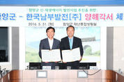 (함양=경남도민뉴스) 박현섭 기자 = 함양군(군수 임창호)은 정부의 신재생에너지보급 확대정책과 기후변화에 적극 대응하고자 지난달 31일 재난상황실에서 임창호 군수·황태진 군의회의장·진병영도의원·정한록 부군수, 남부발전(주)윤종근 대표, 고명석 신성장사업단장 등 군과 의회·업체관계자 10여명이 참석한 가운데 한국남부발전(주)과 투자협약을 체결했다. 한국남부발전(주)은 2001년 한국전력공사에서 분리·설립된 한국전력공사 자회사로 태양광, 소수력 등 신재생에너지 발전사업을 해오고 있다. 이번 협약으로 군은 신재생에너지 발전사업과 관련한 인·허가사항 등 실현가능한 각종 행정적 지원을 하게 되며, 한국남부발전은 신재생에너지 개발사업에 필요한 재원 전액을 투자해 함양군 전역에 대한 입지조사·타당성조사용역 및 발전소 건설 공사 등 사업을 추진한다. 군은 이번 협약으로 신재생에너지 발전소를 건설하여 전기에너지를 생산할 경우 친환경 발전을 통한 전력소비감축, 군재정절감, 지역사회 경기부양 등에 상당한 효과를 거둘 것으로 내다보고 있다. 임창호 군수는 “기술력 뛰어난 한국남부발