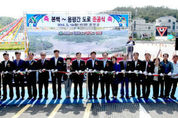 (함양=경남도민뉴스) 박현섭 기자 = 7년간 지루하게 끌어오던 함양군 본백~용평간 4차로 확포장공사가 국비 280억원을 포함 총 323억원을 투입해 마침내 마무리돼 2020함양산삼항노화엑스포를 성공적으로 치를 수 있는 교두보를 확보했다. 함양군(군수 임창호)은 16일 함양IC 입구 회전교차로 수동방면 미개통구간 일원에서 본백~용평간 4차로 확포장공사 준공을 축하하는 기념식 및 개통식 행사를 열었다. 이번 공사로 함양읍 백천리~용평리에 길이 2.9km·폭 20~30m도로, 회전교차로 1개, 연결도로 550여m 등이 들어섰다. 본백~용평 4차로 확포장공사는 대전~통영 고속도로 개설 후 함양IC 및 함양 JC 접근로인 함양읍 용평리~백천리 지방도 이용차량이 크게 늘어나 병목구간이 생기는 등 재해와 교통사고 위험이 커져 추진됐다. 수동여울놀이패의 사물놀이공연과 천상울림놀이패의 난타 축하공연으로 시작된 이날 행사에는 임창호 군수, 신성범 국회의원, 강석진 국회의원 당선자, 황태진 군의회의장, 김성철 함양경찰서장, 김정옥 함양교육지원청 교육장, 진병영 도의원 등 내·외빈과 지역주민 등 500여명이 참석해 역사적인 개통을 축하했다. 군은