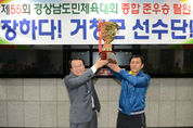 (거창=경남도민뉴스) 박현섭 기자 = 거창군(거창군통합체육회장 양동인)은 지난 4월 29일부터 5월 2일까지 4일간 양산시에서 개최된 제55회 경남도민체육대회에 출전하여 거창군 선수단이 2011년도 제50회 창원시 대회 준우승 이후 5년 만에 종합 준우승의 위업을 달성했다. 군은 그동안 떨어진 위상을 드높이기 위하여 양동인 거창군수를 정점으로 임원․선수 모두가 집중훈련 기간 동안 각고의 노력으로 우승 3종목(사격․농구․레슬링), 준우승 7종목(역도․씨름․유도․검도․보디빌딩․배구․육상필드), 3위 3종목(정구․복싱․배드민턴) 등 22개 종목 중 과반이상인 13개 종목에서 입상하며, 창녕군을 제치고 함안군에 이어 종합 2위를 차지했다. 지난 2일 우천으로 거창군 대표 선수단 귀향 환영식에 양동인 거창군수를 비롯하여 이성복 군의회의장, 통합체육회 임원 및 군민등 150여 명이 자리를 가득 메운 가운데 종합 준우승을 자축했다. 양동인 거창군수는 귀향 환영식에서 “이렇게 기쁠 수가 없다, 너무 행복하다”는 감격의 표현에 이어