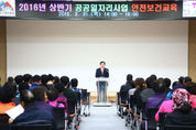 함양군은 지역공동체 일자리 사업추진에 따른 복무 및 안전사고를 예방코자 31일 2016년 상반기 공공일자리사업 참여자 80여명을 대상으로 안전보건교육을 실시했다. 취업·취약계층에게 직접 일자리를 제공하고 저소득층의 생계안정을 위해 실시되는 공공일자리사업은 문화유적지환경정비사업 등 9개 지역공동체일자리사업과 49개 공공근로사업이 해당된다. 이날 교육 초청강사인 한국산업안전보건공단 경남지사 교육문화부 김명준 부장은 ‘근로자들이 반드시 지켜야 할 안전보건수칙’에 대해 안내하고 사업장별 주요 안전사고 및 재해사례를 주제로 교육했다. 군 관계자는 “수시로 안전교육을 실시하고 사업장 안전지도와 지도감독을 철저히 해 재해를 미연에 방지할 수 있도록 최선을 다하겠다”고 했다.