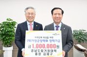 [경남도민뉴스=백형찬 기자] (재)거창군장학회는 27일 경남도립거창대학 김재구 총장이 지역인재 양성을 위한 장학금 100만 원을 기탁 했다고 밝혔다. 김재구 총장은 “지역의 학생들이 안정적인 환경에서 학업에 전념하고 자신의 꿈을 키워나가는 데 조금이나마 도움이 되길 바란다”며, “앞으로도 지역사회와 함께 성장하는 대학으로서 인재 양성에 보탬이 되겠다”라고 기탁 소감을 전했다. 구인모 이사장은 “지역인재 육성을 위한 뜻깊은 나눔에 깊이 감사드린다”며 “기탁해 주신 장학금은 학생들이 미래를 향해 힘차게 나아갈 수 있도록 소중히 사용하겠다”고 말했다. 한편, (재)거창군장학회는 지역 학생들의 교육 기회 확대와 우수 인재 양성을 위해 장학금 지원과 다양한 교육 지원사업을 추진하며 지역 교육 발전에 기여하고 있다.