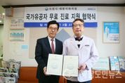 (사천/설영효 기자) = 사천시와 대한치과의원이 지난 27일 대한치과의원(사천읍 소재)에서 국가유공자 치과 무료 진료 지원 협약식을 가졌다. 이날 송도근 사천시장과 이무련 대한치과 원장은 1년간 사천시 관내 국가유공자들에게 무료 진료를 지원하는 협약서에 서명을 하고, 협약기간 종료 후 연장 지원은 별도 협의키로 했다. 현재 일반적 국가유공자들은 보훈병원, 국가보훈처에서 지정하는 병원에서 의료진료 혜택을 받았으나, 치과에 대한 혜택을 못 받고 있는 실정이라 치아 상태가 좋지 않은 참전유공자 등에게는 진료비 부담이 클 수밖에 없다. 이에 시는 국가유공자들에게 무료진료 봉사를 지원하는 치과를 접수받아 대한치과와 협약식을 하게 됐다. 무료 진료 대상자는 시에 주소를 둔 국가유공자 본인으로, 유족이나 가족은 해당되지 않으며 대한치과 방문시 국가유공자증, 국가유공자라고 인증할 만한 서류를 반드시 지참하여야 무료로 진료 받을 수 있다. 무료로 진료 받을 수 있는 진료내용은 임플란트와 대규모 수술을 제외한 각종 치료 및 진료로, 이에 대한 세부적인 판단은 대한치과에서 한다. 시는 대한치과의원에 「국가유공자 무료 진료 치과의원」안내판을 제작하여 지원하고 추후 감사패