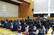 (사천/설영효 기자) = 공군 블랙이글스 특수비행팀 조종사들이 지난 19일 사천고교를 방문하여 실내체육관에서 400여명의 학생들과 만남의 시간을 가졌다. 블랙이글스 조종사들은 20일~ 23일까지 사천비행장에서 개최되는 ‘공군과 함께하는 2016 사천에어쇼’ 참가를 위해 사천을 찾았으며, 이날 사천고 학생들을 위해 특별 방문하여 “사천 하늘에 태극을 그리다!”라는 주제로 50분 동안 강연 및 질의응답으로 진행됐다. 이날 경진호 소령은 학생들에게 블랙이글스가 세계 최고 수준의 에어쇼를 선보일 수 있게 되기까지 과정을 들려주고 비행의 원리, 조종사가 되기 위해서 어떤 준비를 해야 하는지 등에 관한 학생들의 다양한 질문에 답변하는 시간을 가졌다. 한편 사천고 관계자는 “이번 만남을 통해 학생들은 항공기 조종과 우주항공 분야에 대한 다양한 간접 경험을 쌓고, 미래 자신들의 꿈과 비전의 폭을 넓히는 좋은 계기가 될 것이다”고 밝혔다.