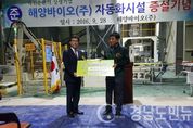 (사천/설영효) = 사천시 인재육성장학재단은 지난달 28일 송포농공단지내 해양바이오(주)에서 ‘패각자원화시설 준공식’ 통해 인재육성 장학기금 3백만원 기탁했다고 밝혔다. 이날 정효상 대표는 “평소 업체 운영하며 어려운 학생들에게 도움 주고자 이번 준공행사 비용을 절감하여 장학기금 마련하게 되었다.”며, “학생들이 걱정 없이 열심히 공부하여 지역인재로 성장하는데 보탬이 되도록 “마음을 전했다. 한편 행사에 참석한 송도근 사천시장은 “패각자원화시설 준공을 축하하고, 앞으로 업체가 더욱 번창하기 바란다”며, “사천지역 교육발전과 인재를 육성하기 위해 시에서도 지속적으로 노력해 나가겠다”고 말했다.