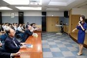 (하동/설영효 기자) = 하동군은 23일 군청 소회의실에서 윤상기 군수를 비롯한 간부공무원과 본청 및 의회 담당주사들 참석 ‘9월 금요 아카데미’를 개최했다. 금요 아카데미는 연구와 공부하는 공직자상을 구현하고 급변하는 문화·이슈에 대한 대응력을 길러 창의적 업무추진 능력을 제공코자 사회적 이슈, 교양, 국가정책 등을 내용으로 매월 넷째 주 금요일 실시되고 있다. 이번 금요 아카데미는 웃음치료 스타강사로 알려진 최은미 한국열린사이버대학교 특임교수를 초빙해 ‘셀프(SELF) 소통리더로 내 인생을 SELF 하자’를 주제로 강의했다. 최 교수는 이날 강의에 ‘참된 자신의 리더’가 되는 것을 실현시키는 것을 ‘리더십’이라고 정의하고, ‘SELF’라는 단어를 통해 자신의 인생을 셀프하는 방안을 제시했다. 그는 ‘내 인생의 주인은 나’라는 점을 강조 늘 웃고(Smile), 긍정적인 자세로 감동·감격(Emotion)하며, 나를 사랑(Love)하고, 끝까지 포기하지 않고 파이팅(Fighting)할 것을 주문했다.