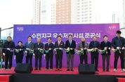 [경남도민뉴스=신석주 기자] 부산 동래구은 11월 28일 오전 11시 동래구 수민어울공원 일원에서 ‘수민지구 우수저류시설 설치사업’ 준공식을 개최하고, 저지대 상습 침수지로 여겨졌던 동래구 수민동 일원 지역 주민들의 안전 확보를 기념했다. 이날 준공식에는 장준용 동래구청장을 비롯해 박형준 부산광역시장, 시의원, 구의원, 지역 주민, 공사 관계자 등 약 200여 명이 참석해 대규모 재해예방 사업 완료를 축하했다. 수민지구는 지난 2009년 7월, 2014년 8월, 2017년 9월 등 발생한 집중호우로 인해 막대한 재산 피해가 발생한 지역으로, 주민들의 안전 확보와 재산권 보호를 위해 동래구는 총 사업비 476억원(국비 238억원, 시비 184.25억원, 구비 53.75억원)을 투입해 ‘수민지구 우수저류시설 설치사업’을 추진했다. 장준용 동래구청장은 “부산광역시 내 최대 규모인 3만 5천 톤의 빗물을 저장할 수 있는 우수저류시설 설치에 따라서 저지대 상습 침수지역 주민들의 안전 확보가 가능해졌다”라며, “우수저류시설 상부 공간에는 공원을 조성한 후 2026년 개장할 예정으로 지역 주민들의 삶의 질 향상에도 크게 기