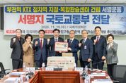 [경남도민뉴스=신석주 기자] 부산진구는 부전역을 KTX(경부고속철도) 정차역으로 지정하고 복합환승센터를 조속히 건립하고자 하는 지역주민의 뜻을 전달하기 위해 11월 19일(수) 오전 11시 서울 여의도 국회의원회관에서 서명운동 결과 전달 행사를 개최했다고 밝혔다. 이날 김영욱 부산진구청장을 비롯해 박현철 부산진구의회 의장, 부전역 복합환승센터 추진협의회 김윤환 회장 등 지역 대표단 10명이 참석했다. 지역구 국회의원인 정성국 의원(부산진구갑)과 이헌승 의원(부산진구을)도 함께해 국토교통부 철도국장을 포함한 정부 관계자에게 약 40만 명의 시민 서명지를 직접 전달했다. 부산 도심 핵심 교통거점인 부전역은 동해선, 중앙선, 부전~마산 복선전철, 부산형 급행철도(BuTX) 등 다양한 노선이 집결하는 주요 철도 허브임에도 불구하고 현재 경부고속철도(KTX)가 정차하지 않아 서울을 비롯한 전국 주요 도시와의 접근성이 제한되는 상황이다. 이에 부산진구는 지난 2월부터 온·오프라인을 통해 KTX 부전역 정차 및 복합환승센터 건립을 위한 시민 서명운동을 전개, 지금까지 40만여 명의 서명을 모았으며, 향후 100
