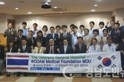 (창원/심지윤 기자) = 우암의료재단 시립마산요양병원과 태국보훈병원(The Veterans General Hospital)은 지난 7일 시립마산요양병원에서 병원간의 의료기술 교류 및 진료협약을 위한 MOU를 체결했다. 이날 협약식은 신병권 창원시 복지여성국장, 손도수 경남·울산재향군인회장(우암의료재단이사장), 토싸폰 홈차로엔(Tossaporn Homcharoen) 태국보훈처 부처장(중장)을 비롯한 관계자 30여 명이 참석한 가운데 진행됐다. 지난해 8월 경남·울산재향군인회(회장 손도수)와 태국재향군인회간의 자매결연을 계기로 체결된 이번 협약으로 우리나라와 태국간의 의료기술 교류가 이뤄지게 된다. 우암의료재단에 따르면, 이번 MOU 체결이 양국을 왕래하는 보훈환자들의 병원이용 편의를 도모하고 의료진 연수기회 확대 등에도 기여할 것으로 기대된다고 밝혔다. 한편, 태국보훈처 관계자들은 지난 5일부터 9일까지 머물며 MOU 체결뿐만 아니라 진동태봉병원, 마산삼성병원 등 인근 의료기관도 견학할 예정이다.