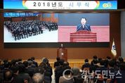 (창원/심지윤 기자) = 창원시는 지난 2일 시민홀에서 ‘2018년 무술년 새해 시무식’을 개최했다. 이날 안상수 시장은 신년사를 통해 “‘도약의 새 시대 큰 창원’이라는 원대한 비전을 품고 달려온 통합 2기 시정이 이제 하나하나 의미 있는 성과를 만들어 내며 시의 미래를 밝혀가고 있다”면서 “2018년에도 시민이 시정의 주인이라는 결코 흔들리지 않는 대원칙 아래 창원을 더 크고 강한 도시로 만들어 가겠다”고 시정운영방향의 큰 포부를 밝혔다. 안상수 시장은 “‘창원방문의 해’를 통해 창원관광의 경제가치를 끌어 올릴 수 있도록 할 것”이라며 “아시아에서 두 번째로 개최되는 ‘세계사격선수권대회’와 ‘창원시 3대 축제’를 주축으로 창원형 관광콘텐츠를 대외에 확실히 각인시켜 관광산업을 본궤도에 올려놓을 것”이라고 말했다. 이어, 안상수 시장은 “‘신성장 동력산업’ 육성으로 경제체질을 강화하고 기업섬김을 이어갈 예정”이라며 &ld