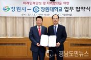 (창원/심지윤기자) = 창원시와 창원대학교는 지난 17일 ‘미래인재 양성 및 지역발전을 위한 업무협약’을 체결했다. 이날 안상수 창원시장과 최해범 창원대학교 총장은 4차 산업혁명시대를 이끌어 나갈 미래 지역인재를 양성하고 급변하는 사회에 능동적으로 대처하기 위해 시와 대학이 긴밀하게 협력하고 소통해 나갈 수 있도록 4가지 분야에 대하여 상호 협력하기로 했다. 두 기관은 ▲미래사회 지역인재 육성을 위한 협력 ▲지역사회의 복지증진을 위한 협력 ▲지역의 산업경쟁력 강화를 위한 협력 ▲기타 양 기관의 발전을 위한 상호 교류 협력 등 창원시의 교육발전과 지역발전에 힘쓸 것을 다짐하는 시간을 가졌다. 안상수 창원시장은 인사말을 통해 “그동안 시와 창원대학교는 우수 과학영재를 발굴 육성하고 시민들에게 다양한 평생학습의 기회를 제공하는 한편, 예비창업자에 대한 적극적인 지원으로 창업활성화에 앞장서는 등 지역발전을 위해 함께 노력하여 왔다”면서 “4차 산업혁명시대를 맞아 급변하는 사회에 능동적으로 대처할 수 있는 미래인재를 육성하는 등 지역사회발전을 위한 양 기관의 체계적이고 실질적인 상호협력과 교류를 통해 우리시와