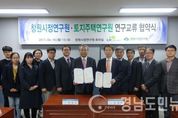 (창원/심지윤 기자) = 창원시정연구원(원장 박양호)과 LH공사 토지주택연구원(원장 손경환)은 10일 오후 창원시정연구원 회의실에서 ‘창원시의 주택·도시재생 및 지역개발 등 관련분야의 상호협력과 우호증진을 위한 업무협약’을 체결했다. 이번 협약은 LH공사 토지주택연구원이 토지·주택 분야의 종합연구기관이자 공기업 부설 연구원으로서 창원시의 토지·주택 사업 및 지역경제 활성화를 위한 공동 연구개발 등과 관련한 업무협력 및 상호교류를 추진해 창원시 발전에 기여하기 위해 마련됐다. 업무협약의 주요 내용은 ▲토지주택 및 도시재생분야 세미나·강연회·학술회의 등의 공동개최 및 협력 ▲연구과제의 개발 및 연구 참여 ▲연구성과 및 출판물의 교환 등과 관련한 사항 등이다. 이에 따라 두 기관은 우선 ‘창원시 주택시장 전망과 정책방향’을 주제로 하반기에 세미나를 공동 개최하기로 했다. 박양호 창원시정연구원장은 “이번 연구협약 체결로 창원시 토지주택 부문 연구의 활성화가 이뤄져 창원맞춤형 주택정책 개발에 기여할 것”이라고 강조하면서 “나아가