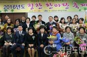 (창원/심지윤 기자) = 경상남도새마을부녀회(회장 김소현)는 24일 오후2시 창원 컨벤션센터 회의실에서 백옥자 새마을부녀회중앙연합회장 및 시군부녀회장단을 비롯한 칭찬주인공과 새마을봉사대원 등 120명이 참석한 가운데 2016년도 칭찬한마당축제를 개최했다. 이번 행사에서는 시군별로 추천된 창원시 성산구 유보길씨를 비롯한 22명에게 도부녀회장의 칭찬패와 칭찬기념품을 전달하고 격려했으며 부녀새마을운동에 헌신봉사한 우수부녀회장 5명에게 중앙부녀회장 표창장이 수여되기도 했다. 또한 식전행사로 칭찬힐링 공연으로 합천군 새마을풍류봉사단이 참석자들이 함께하는 어울마당으로 진행되었으며 의식행사에서는 2016 칭찬운동 경과보고와 칭찬주인공의 칭찬사례 소개, 조서정님의 축하연주 등으로 진행됐다. 김소현 도부녀회장은 인사말을 통해 “이제 우리는 자기가 가지고 있는 재능이나 시간을 투자하여 지역사회를 발전시키고 도움의 손길이 필요한 곳을 찾아가서 따뜻한 사랑을 베풀어 주는 사람이 지금 우리 사회에 꼭 있어야 할 사람이라고 생각하며 여러분들처럼 타인에 대한 따뜻한 관심과 배려하는 마음이 있어야만 가능한 것으로 앞으로도 칭찬문화 확산에 앞장서 달라”고 당부했