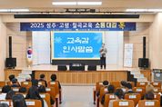 [경남도민뉴스=오창경 기자] 경북교육청은 3일 칠곡군에 있는 칠곡군민회관 시청각실에서 ‘성주․고령․칠곡, 함께 배우며 미래를 잇다’를 주제로 제9회 소통대길 톡을 개최하고, 서부권 교육공동체와 함께 지역교육 현안과 미래 교육 방향을 논의했다고 밝혔다. 이날 행사에는 임종식 경북교육감을 비롯해 정한석 경북도의회 교육위원과 박순범․박규탁 경북도의회 의원, 김재욱 칠곡군수, 이상승 칠곡군의회 의장, 성주·고령·칠곡 지역 학교장, 학부모, 학생, 지역사회 인사 등 200여 명이 참석해 교육 현장의 생생한 목소리를 나누며 ‘함께 배우는 따뜻한 경북교육’의 방향을 모색했다. 식전 공연은 지역 마을 학교 아이들과 공연팀 ‘수니와 칠공주’가 꾸민 무대로 따뜻하게 문을 열었으며, 이후 성주·고령·칠곡 세 지역 교육장이 차례로 주요 업무를 보고하며 지역별 특색 있는 교육성과와 현안을 공유했다. 김시용 성주교육장은 ‘배움이 삶의 힘이 되는 성주교육’을 주제로 △성주중 그린스마트스쿨 조성 △초전초 공간혁신 △영어체험센터 리모델링 등 미래형 교육환경 조성과 기초학력 향상을 위한 노력을 소개했다. 정태호 고령교육장은 ‘따뜻