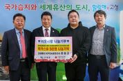 [경남도민뉴스=이형섭 기자] 한국프로골프(KPGA) 유송규 선수가 22일 고성군청을 방문하여 동아제약 박카스 5천병을 기탁하였다. 유송규 선수는 10월 17일 강원도 양양군 설해원 더 레전드 코스(파72)에서 열린 ‘2024 한국프로골프(KPGA)투어 더채리티 클래식 1라운드 11번홀에서 홀인원을 기록하여 동아제약의 박카스를 받아 5천 병을 고향인 고성에 기탁을 하게 되었다. 유송규 선수는 “고향에 기탁하게 되어 기쁘고, 고향 분들에게 힘이 되는 일이 되었으면 좋겠다” 며 고향 사랑에 대한 남다른 애정을 표했다. 이에 이상근 고성군수는 “유송규 선수의 홀인원을 진심으로 축하드리며, 그 기쁨을 고성군민과 나누기 위해 기탁해 주셔서 정말 감사하다"며, "앞으로도 유송규 선수와 같은 지역 출신의 인재들이 고향을 위해 나누고 함께 성장할 수 있는 환경을 만들기 위해 최선을 다하겠다”고 전하며 유성규 선수의 활약을 응원하겠다고 덧붙였다. 이날 기탁식에 함께 참석한 최을석의장, 우정욱 부의장은 고성 출신의 유성규선수가 KPGA에서 활약하는 모습을 자랑스럽게 여기며 앞으로도 적극적으로 응원할 것이라고 격려하였