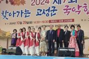 [경남도민뉴스=이형섭 기자] (사)한국국악협회 고성군지부는 전통예술의 저변확대를 위해 29일 오후 2시 30분부터 2시간 동안 고성군 실내체육관에서 국악예술인, 군민 등 400여명이 참석한 가운데 박애리 명창 및 진도북놀이공연단 등 8개 프로그램으로 2024년 제7회 찾아가는 고성군 국악한마당을 성황리에 개최했다. 이날 전통예술의 혼이 살아 숨쉬는 유서 깊은 고성에서 아름다운 국악 및 소가야판소리취함, 일타고수퓨전북난타, 한국무용, 국악가요, 국악명창 박애리의 열두달이다 좋아, 쑥대머리, 전라남도무형문화유산 진도북놀이공연 등 전국 명인들을 초청하여 수준 높은 전통 국악과 특색 있는 민요 등 국악공연을 통해 다양한 문화예술 체험 기회 제공 및 지역 국악의 저변 확대에 큰 의미를 두고 진행되어 군민들로부터 큰 호응을 받았다. 특히 이날 행사에서는 이상근 고성군수, 김성수 고성소방서장, 이희춘 한국국악협회 진도군지부장, 하학열 전고성군수, 이재성 한국농어촌공사 고성통영거제지사장, 이용관 국립농산물품질관리원 고성사무소장을 비롯한 읍면민 등과 함께 400여명의 군민들이 참석하여 늦은 가을 오후 조상들의 애환이 담겨있는 전통문화 유산