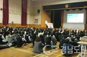 (사천/이형섭 기자) = 공군 블랙이글스 특수비행팀 조종사들이 26일 삼천포중앙고등학교를 방문하여 강당에서 300여 학생들과 만남의 시간을 가졌다. 블랙이글스 조종사들은 오는 27일부터 30일까지 사천비행장에서 개최되는 ‘제13회 경남사천항공우주엑스포’참가를 위해 사천을 찾았으며 삼천포중앙고등학교 학생들을 위해 특별히 방문하여 50여 분간 강연 및 질의응답 시간을 가졌다. 이 날 신태웅 소령은 학생들에게 블랙이글스가 세계 최고 수준의 에어쇼를 선보일 수 있게 되기까지의 과정을 들려주고 공군과 조종사가 어떤 활동을 하는지, 공군이나 조종사가 되기 위해서는 어떤 준비를 해야 하는지 등에 관한 학생들의 다양한 질문에 답변하는 시간을 가졌다. 이번 만남을 통해 학생들은 평소 만나기 힘든 항공기 대한민국 최고의 공군 조종사를 직접 만남으로서 확고한 꿈과 비전을 갖게 되었으며, 블랙이글스 조종사들도 학생들의 밝은 모습에서 긍정적인 에너지를 느낄 수 있는 시간이었다.