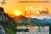 (남해/이형섭 기자) = 천혜의 관광자원을 보유한 보물섬 남해군이 지역관광을 통한 내수경제 활성화를 위해 실시하는 ‘2017 가을 여행주간’을 맞아 다채로운 할인과 서비스 혜택을 마련했다. 군에 따르면 “여행은 남해로 탁 떠나는 거야!”란 주제로 지난 21일부터 내달 5일까지 16일간을 ‘2017 남해군 가을 여행주간’으로 정하고 관광, 숙박, 체험, 음식, 쇼핑시설을 할인 운영하는 등 관광객 유치에 나섰다. 가을 여행주간 기간 할인행사에 참여하는 업체는 11개 업체로 원예예술촌에서는 성인 방문객을 대상으로 입장료를 20% 할인하는 행사를 진행하며, 두모드므개체험마을에서는 체험 20% 할인, 체험관 숙박 10%할인을 각각 진행한다. 홍현해라우지마을과 왕지등대마을에서도 가을 여행주간 행사에 동참했는데, 홍현해라우지마을에서는 체험관 숙박료 20%, 왕지등대마을에서는 갯벌체험 20% 할인혜택을 제공한다. 남해비치호텔을 비롯한 4개 숙박시설에서도 이 기간 숙박료 할인 및 서비스 제공 행사를 진행하는데, 남해비치호텔 20%, 보아스홈펜션 30%, 남해명품게스트하우스 10%의 할인 행사를 각각 진행