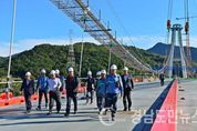 (남해/이형섭 기자) = 박영일 남해군수가 지난 13일 오후 군 공무원과 시공사인 GS건설 관계자 등과 함께 마지막 상판을 연결한 제2남해대교를 찾아 사업현장을 살펴보고 있다. 남해군 설천면과 하동군 금남면을 잇는 제2남해대교는 지난 2009년 10월 착공해 지난해 5월 주탑설치를 완료하고 올해 7월 교량상판 설치작업을 시작했다. 84일 만인 이날 마지막 상판공사를 마무리하고 교량이 모두 연결됐으며 향후 교차로, 진입도로, 전망대 등의 공사를 마무리하고 내년 6월께 준공될 예정이다.