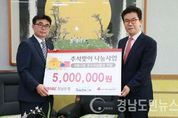 (사천/이형섭 기자) = 사천시(시장 송도근)는 지난 19일 경남은행 삼천포지점(지점장 신용걸)에서 민족 최대의 명절인 추석을 앞두고 지역의 소외된 이웃을 위해 소중하게 써달라며 온누리 상품권 5백만원을 기탁했다고 밝혔다. 경남은행 삼천포지점은 매년 명절과 가정의 달, 연말연시가 되면 떡국 세트, 독거노인 생필품, 사랑의 연탄, 김장나누기 성금 전달 등 다양한 이웃돕기 활동을 펼치고 있어 지역사회의 귀감이 되고 있다. 경남은행 삼천포지점 신용걸 지점장은 “경남은행 직원들의 기금으로 운영되는 사랑나눔재단에서 주위 어려운 이웃을 위해 작게나마 보템이 되어 기쁘고 앞으로도 지속적으로 기부 문화에 동참하겠다”고 밝혔다. 한편, 사천시에 기탁된 상품권은 경남사회복지공동모금회와 연계하여 어려운 이웃을 100세대에게 5만원씩 전달될 예정이다.