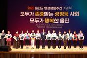 [경남도민뉴스=장강동 기자] 울진군은 울진군여성단체협의회(회장 최옥수) 주관으로 지난 9월 17일 울진연호문화센터에서‘2025년 울진군 양성평등주간 기념행사’를 성황리에 개최했다. ‘모두가 존중받는 성평등 사회, 모두가 행복한 울진’을 주제로 열린 이번 행사에는 여성단체 회원과 군민 등 400여 명이 참석했다. 드림태권도의 태권도 공연을 시작으로 여성단체 소개, 유공자 표창, 주제퍼포먼스‘매직트리’등이 이어졌고 뜨거운 호응 속에 진행됐다. 특히 이날 방송인 이성미 씨가 주제강연자로 나서,‘진정한 성평등은 일상 속 작은 배려에서 시작된다’는 메시지를 전하며 큰 박수를 받았다. 또한 행사장 외부 부대행사로 울진군보건소와 울진군가족센터가 운영하는 홍보부스가 마련되어 다양한 정보를 제공했고, 경북광역여성새일센터에서‘이음카(커피차)’를 운영하여 행사장 분위기에 활기를 더했다. 최옥수 울진군여성단체협의회장은“오늘의 행사가 단순한 기념을 넘어 성평등에 대한 인식을 바꾸는 출발점이 되길 바란다”며“앞으로도 여성단체가 중심이 되어 건강한 성평등 문화를 만들어가겠다”라고 밝혔다. 손병복 울