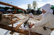 산청군 단성면 목면시배유지에서 제10회 목화축제 및 전통 무명베짜기 재현 행사가 열린 가운데 베짜기 재현에 나선 한 아낙이 베틀에 앉아 무명을 짜고 있다. 무명베짜기 재현은 문익점 선생이 산청군 단성면에 처음 목화씨를 심은 것을 기념하기 위해 매년 10월 마지막 날을 전후해 목면시배유지에서 개최된다.