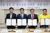(산청/정우태 기자) = 산청군(군수 허기도)은 14일 군청 소회의실에서 경남창조경제혁신센터(센터장 최상기) 및 (주)휴롬(회장 김영기), 효성식품영농조합법인(대표 강기홍)과 지역 항노화산업 육성 및 창조경제 실현을 위한 업무협약 체결했다. 협약식에는 허기도 산청군수, 경남창조경제혁신센터 최상기 센터장, ㈜휴롬 정영두 사장과 김동환 휴롬인재개발원장, 효성식품영농조합법인 강기홍 대표 등 20여 명이 참석했다. 협약에 따라 각 기관은 ▲창업활성화 및 창조경제 실현을 위한 상호 협력 ▲항노화분야 창업기업 육성∙지원 및 우수기업 발굴 ▲창업교육,세미나 등의 행사 공동개최 및 정보공유 ▲기관 상호간의 업무 및 활동에 대한 홍보 협력 ▲기타 경남 항노화 바이오산업 육성 등에 상호 협력하기로 했다. 이번 업무협약은 건강증진, 웰빙 등에 대한 욕구 증가로 항노화 수요가 급증함에 따라 한방항노화 제품과 다양한 관련 서비스 연계를 통한 산업간 동반성장 필요성 대두에 따라 추진됐다. 허기도 군수는 “지속적이고 체계적인 항노화산업 발전을 선도하기 위해서는 항노화식품 관련 우수한 기술력과 제품력을 가진 (주)휴롬과 효성식품영농조합법인 간의 유기적인 협력