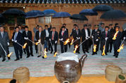 지난달 30일 산청군 금서면 동의보감촌에서 제16회 한방약초축제 개막식이 열린 가운데 허기도 산청군수와 이승화 산청군의회 의장, 박우범 경남도의회 의원을 비롯한 참석 내빈들이 대왕약탕기에 불을 붙이며 축제의 시작을 알리고 있다.