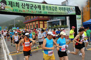 12일 산청군 동의보감촌 일원에서 개최된 제1회 산청군수배 동의보감촌 마라톤대회에서 참가자들이 출발선을 통과해 힘차게 달리고 있다.