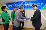 (산청/정우태 기자) = 산청군새마을회(회장 양영규)는 지난 22일 산청읍 새마을회관에서 2016년 산청군 새마을사업 실적보고회를 개최했다. 이번 보고회는 제2새마을운동 추진성과를 결산하고 유공 새마을지도자포상을 통해 새마을지도자를 격려하고자 마련됐으며 허기도 군수, 이승화 의장, 박우범 도의원을 비롯한 내빈과 새마을지도자 150여 명이 참석했다. 2016년 펼친 사업들의 영상보고, 유공지도자 표창, 헌옷모으기 경진 우수읍면 시상, 새마을봉사상 시상 순으로 진행됐다. 이날 △새마을지도자삼장면협의회 정명희 회장이 행정자치부 장관상, △새마을지도자생비량면협의회 이천세회장 외 2명이 경상남도지사상, △산청읍 조명택지도자 외 23명이 군수상, △금서면 최용환 회장 외 2명이 군의회의장상, △단성면 하승준 회장이 새마을봉사상 수상의 영예를 안았다. 또한 헌옷모으기 최우수는 산청읍이 차지했다. 양영규 회장은 “일선에서 수고해 주신 지도자들에게 감사를 전한다”며 “2017년에도 지역을 위해 일하는 최고의 단체로 거듭날 수 있도록 최선의 노력을 다하겠다”고 밝혔다.