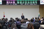 (함양/정희나 기자) = 함양군은 지난 14일 오후 군청 대회의실에서 군민 등 200여명이 참석한 가운데 제 94회 군민자치대학을 열고 세계적인 요리사 에드워드 권을 초청해 열정을 요리하다’라는 주제로 특강을 실시했다. 현재 한국에서 후진양성에 힘쓰며 각종 요리방송프로그램을 통해 활약 중인 그는 이날 특강에서 ‘열정을 요리하다’라는 주제로 요리와 관련한 자신의 인생스토리를 재미있게 풀어내어 군민들로부터 큰 호응을 얻었다. TV프로그램에 보여준 모습 그대로 재치있는 입담을 통해 군민들을 사로잡은 그는 “먹거리 시장 변화에 따른 지역의 농산물 변화도 따라야 한다. 고부가가치 농산물재배와 특수채소 등의 농업의 변화가 중요하다”며 먹거리, 특히 농업 농촌의 중요성에 대해 이야기했다. 군 관계자는 “함양군민자치대학은 군민들의 정보 습득, 폭넓은 교양 형성 등 선진 주민의식 함양을 위해 앞으로도 각계각층의 저명한 인사를 초빙해 다양한 주제로 군민 선진화를 이끌어나갈 방침으로 많은 참여를 기대한다”고 말했다.