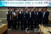 (산청/정희나 기자) = 산청군(군수 허기도)은 9일 군청 소회의실에서 문화관광해설사 11명이 참석한 가운데 간담회 및 SNS 활용 교육을 실시했다. 이번 간담회는 관광 최일선에서 관광객들에게 최상의 해설서비스를 제공하며 산청 대표 홍보대사로 활동 중인 문화관광해설사들의 노고를 격려하기 위해 마련됐다. 또한 참석자들은 웰니스 관광 25선으로 선정된 동의보감촌과 다양한 행사와 축제 정보 등 산청관광 전반에 대해 소통하는 시간을 가졌다. 간담회에 이어 페이스북 활용법 및 콘텐츠 생성법 등 SNS를 활용해 산청관광의 매력을 널리 알리는 교육이 진행됐다. 산청군 관계자는 “관광산업의 경우 트랜드에 민감하고 SNS 등 온라인을 통한 입소문의 파급효과가 크다”며 “산청관광에 풍부한 지식과 다양한 정보를 가지고 있는 문화관광해설사들의 SNS를 통한 적극적인 홍보가 산청관광 활성화에 크게 기여할 것으로 기대한다"고 밝혔다.