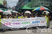 (산청/정희나 기자) = 산청군(군수 허기도)은 산청군건강가정·다문화가족지원센터 주관으로 지난 1일 아동·여성인권지킴이단 간담회 및 폭력예방 합동 캠페인을 가졌다. 이번 캠페인은 아동과 여성 폭력에 대한 사회적 관심을 높이고 피해자 조기발견을 위한 주변의 적극적인 대처를 위해 마련됐다. 산청군 여성회관에서 진행된 간담회에는 산청군, 산청경찰서, 아동여성인권지킴이단인 산청군 새마을부녀회원 등 30여 명이 참석해 2017년 상반기 아동·여성인권지킴이단 활동에 대해서 의견을 나누고 평가하는 시간을 가졌다. 이후 산청읍 장날에 맞춰 성폭력․가정폭력 등 근절과 예방을 위해 산청경찰서, 산청군건강가정·다문화가족지원센터, 산청군드림스타트 등의 단체가 참석한 가운데 폭력 예방 합동 거리 캠페인 행사를 전개했다. 참가자들은 폭력 예방을 위한 결의문 낭독 후 군청을 시작으로 왕래가 많은 산청읍 거리를 행진했다. 산청시장 이용자 등 지역주민에게 폭력예방 리플릿과 홍보물품을 나누어 주며 폭력없는 안전하고 편안한 지역을 만드는데 군민들의 동참을 호소하며 적극적인 홍보 활동을 펼쳤다. 군 관계자는 “우리