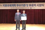 (함양/정희나 기자) = 함양군은 지난달 28일 오후 3시 서울 종로구 정부서울청사 대강당에서 열린 ‘2016년 지방규제개혁 추진실적 평가’ 시상식에서 행정자치부장관 표창인 장려상과 특별교부세로 5000만원의 재정인센티브를 받았다. 이날 행사에는 홍윤식 행정자치부장관을 비롯해 지방재정경제실장, 42개 우수지자체, 유공자, 기타 관계자 등 300여명이 참석해 우수 사례발표를 듣고 수상 우수기관과 유공자를 축하했다. 이번 ‘2016년 지방규제개혁 추진실적 평가결과’는 행정자치부 주관으로 전국 243개 지자체를 대상으로 규제개혁 추진역량강화·행태개선을 통한 규제애로 해소 등 6대 분야 22개 세부항목을 평가해 이뤄졌으며, 함양군을 비롯한 42개 지자체가 우수지자체로 선정됐다. 군은 그동안 법령위임조례 적기개선 15건 등 지자체 자치법규를 개선한 것을 비롯해 행태개선을 통한 규제애로해소(TGM공장등록변경), 푸드트럭 운영지원, 중소기업청 옴부즈맨 규제애로 건의, 지역투자기반조성 등 6개 분야 전반에 걸쳐 기업하기 좋은 환경조성과 불합리한 규제개혁에 힘써 좋은 성적을 받았다. 이날 시상식에 참석해 상을 받