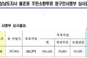 (진주/조권래 기자) = 홍준표 경남도지사 주민소환 청구가 최종 각하됐다. 경상남도선거관리위원회는 26일 11:00 제10차 위원회의를 열고 경상남도지사 홍준표 주민소환투표 청구인서명부에 대한 최종 심사하고, 제출된 357,801명의 서명 중 유효 262,637명, 무효 95,164명으로 주민소환투표 청구요건인 271,032명에 8,395명이 미달해 각하 결정을 했다고 밝혔다. 이번 결정에 대해 도선관위는 "경상남도지사 홍준표 주민소환투표 청구가「주민소환에 관한 법률」제11조(주민소환투표청구의 각하)에 따라 유효한 서명의 총수가 소환투표의 청구요건에 미달해 각하 결정이 이루어진 것"라고 설명했다. 한편, 홍준표 경남지사 주민소환청구를 수임활동을 해온 한 관계자는 "이번 주민소환 청구건은 사실상 경남선거관리위원회와 청구인들간의 싸움이었다"면서 "보정작업 과정에서 보인 경남선거관리위원회의 태도나 행정행태에 대해서는 마땅히 후속적인 논의가 필요할 것이다"며 아쉬움을 토로 했다. 이어 그는 "비록 이번 주민소환 청구가 주민투표로 이어지진 않았지만, 누구의 도움도 없이 길거리에서 받은 주민들의 서명이 2